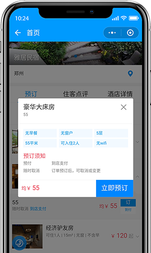 用戶可以通過“附近的小程序”,搜索、朋友圈分享等查看酒店信息、進行預訂,線下可掃碼進入,增加引流方式和流量入口,降低商家管理經(jīng)營成本。